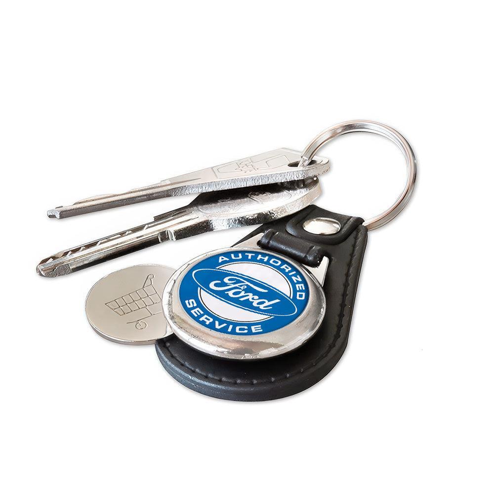 Ford Autorised Service - Nøglering med Indkøbsvognsmønt – Metal & Kunstlæder